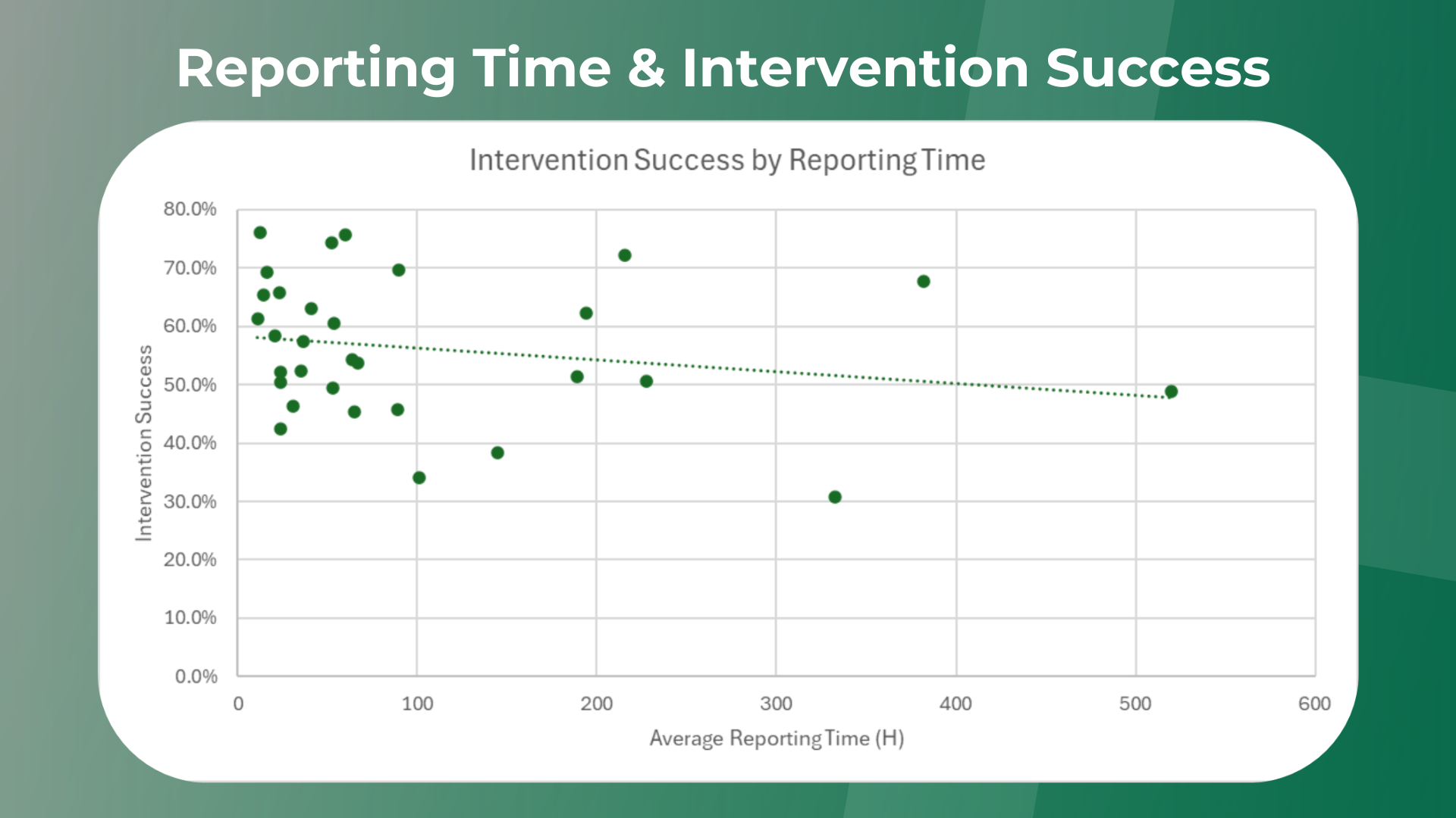 We found customers reporting within similar time-frames achieving very different intervention outcomes. This points to the importance of quality of reporting, including: