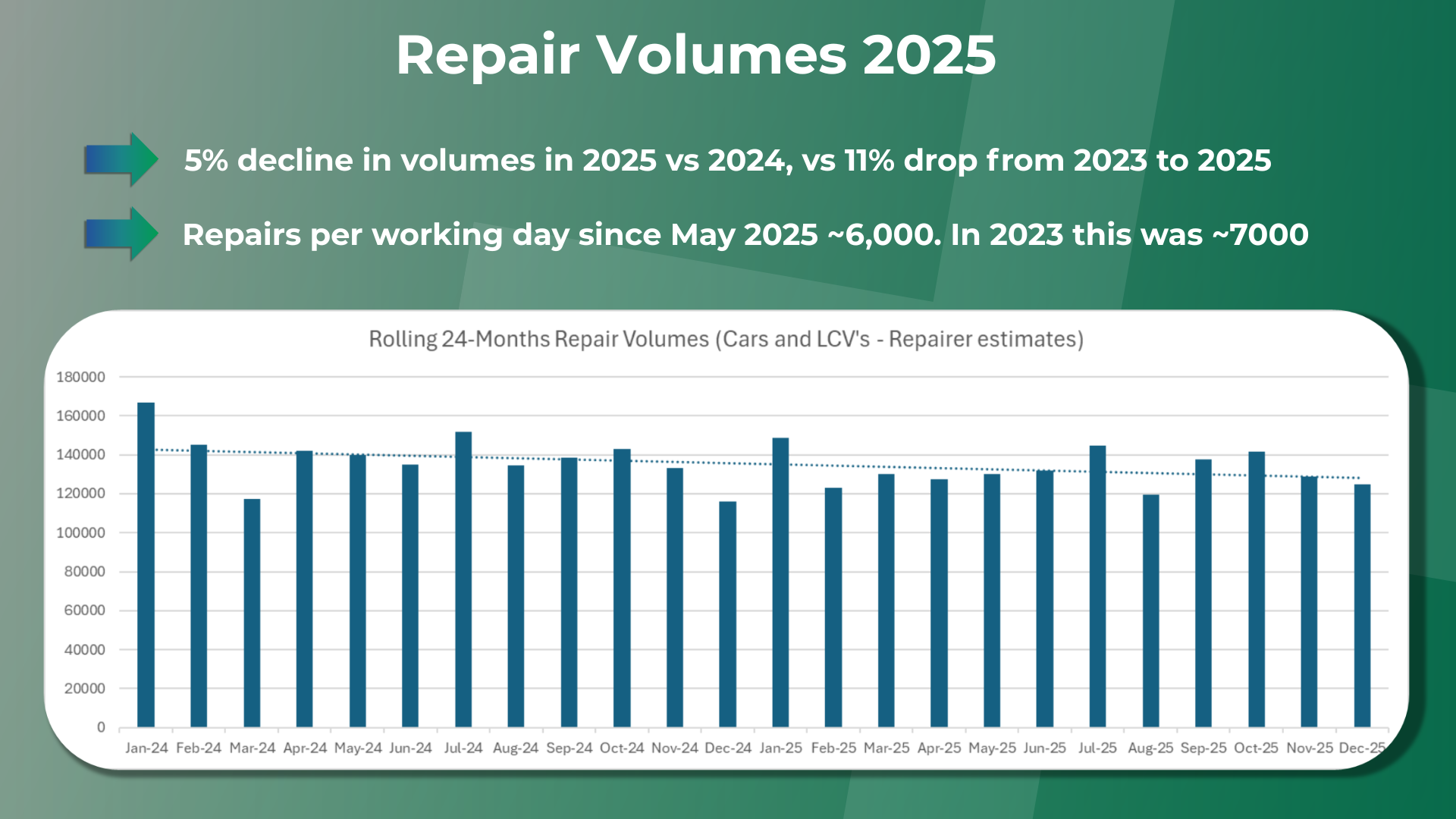 However, while fewer vehicles are entering repair, cost pressures remain significant.